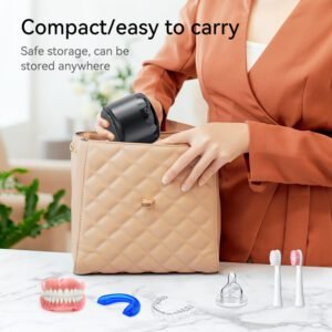The Portable Ultrasonic cleaner for Jewelry & Dentures uses high-frequency ultrasonic waves for deep cleaning. Its compact and efficient design makes it an essential tool for personal item maintenance.