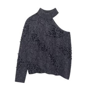 Women’s Asymmetrical Bead Knitted Sweater