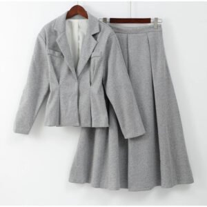 The Women’s kirt Set combines elegance and comfort. Featuring a small suit with a waist-cinching design and a long skirt, this two-piece set enhances your silhouette. It’s perfect for casual outings, work, or special occasions. Designed in a grey color, this set brings sophistication to any outfit.
